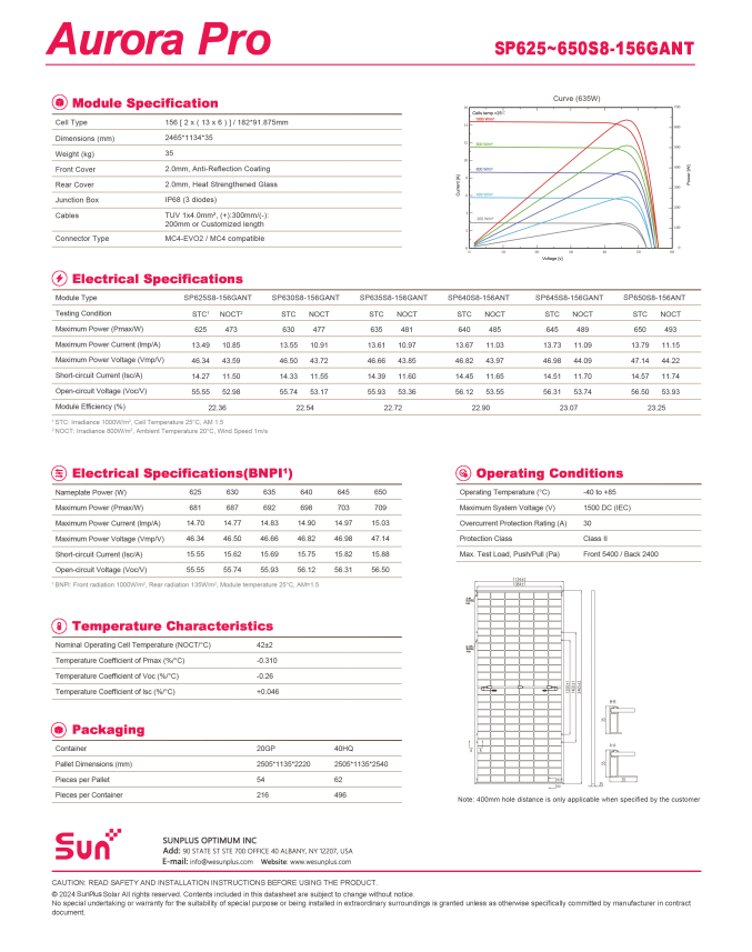 SUNPLUS N-TYPE panneau solaire double face 650W avec plusieurs certifications internationales