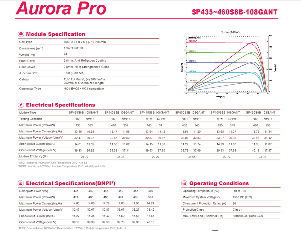 SUNPLUS Panneau solaire monocristallin bifacial de type N 435W Récolte d'énergie à haute efficacité