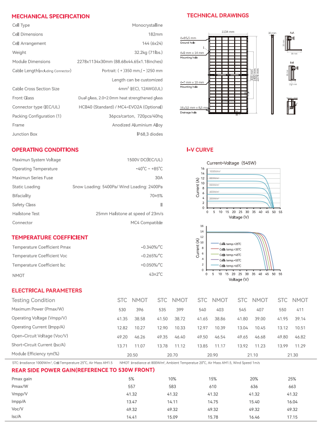 Panneau solaire bifacial N-TYPE SUNPLUS New Energy 530W