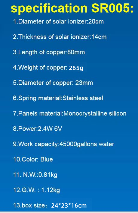SUNRAY SR005 Ioniseur solaire auto-luminescent nocturne 45000 gallons Nettoyeur de piscine portable en cuivre pour piscine à cadre d'hôtel