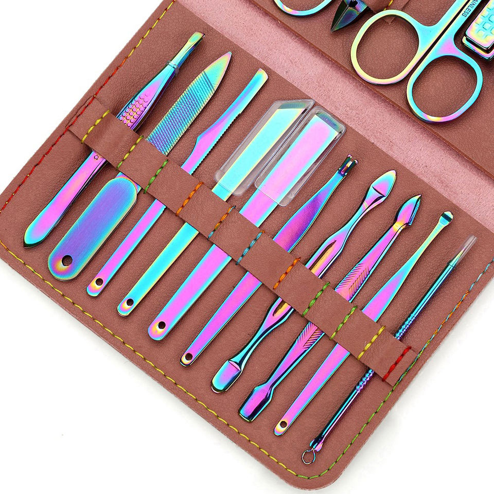 SUNSTAR IMPEX Ensemble de manucure et pédicure professionnel en acier inoxydable, durable, coupe-ongles 5 en 1, couleur surprise pour femmes