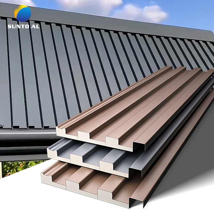 Panneaux de Toiture SUNTO Modernes Populaires Résistants aux Intempéries et au Feu, Panneaux Sandwich Métalliques en PU, Tuiles de Toiture Isolantes en Aluminium