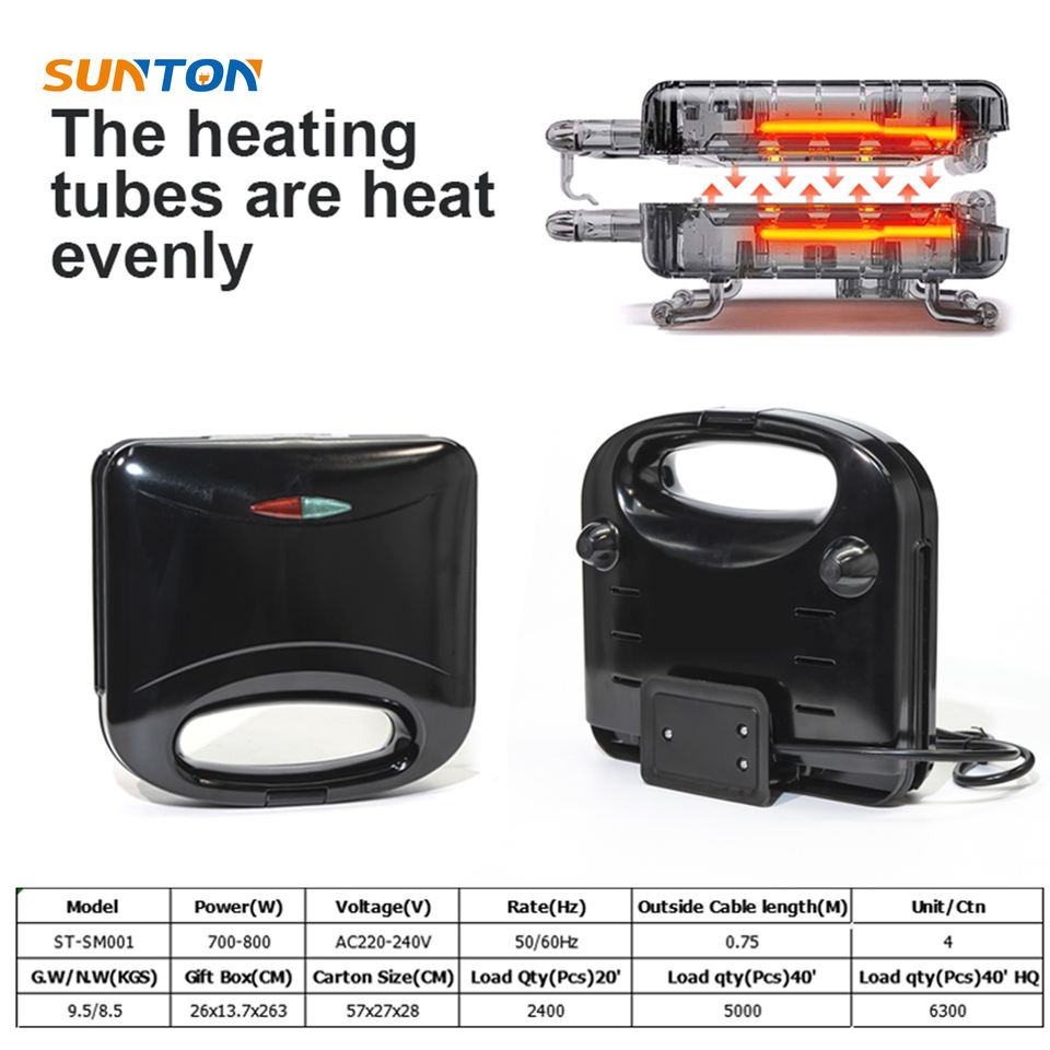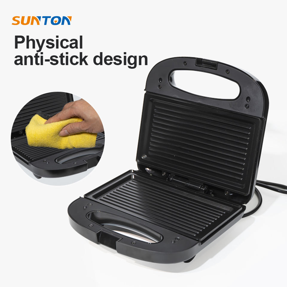 Feature:2 slice Sandwich Maker stainless steel, cool touch hosing, Non-stick coated cooking for easy cleaning, Thermostatically controlled two pilot lights
