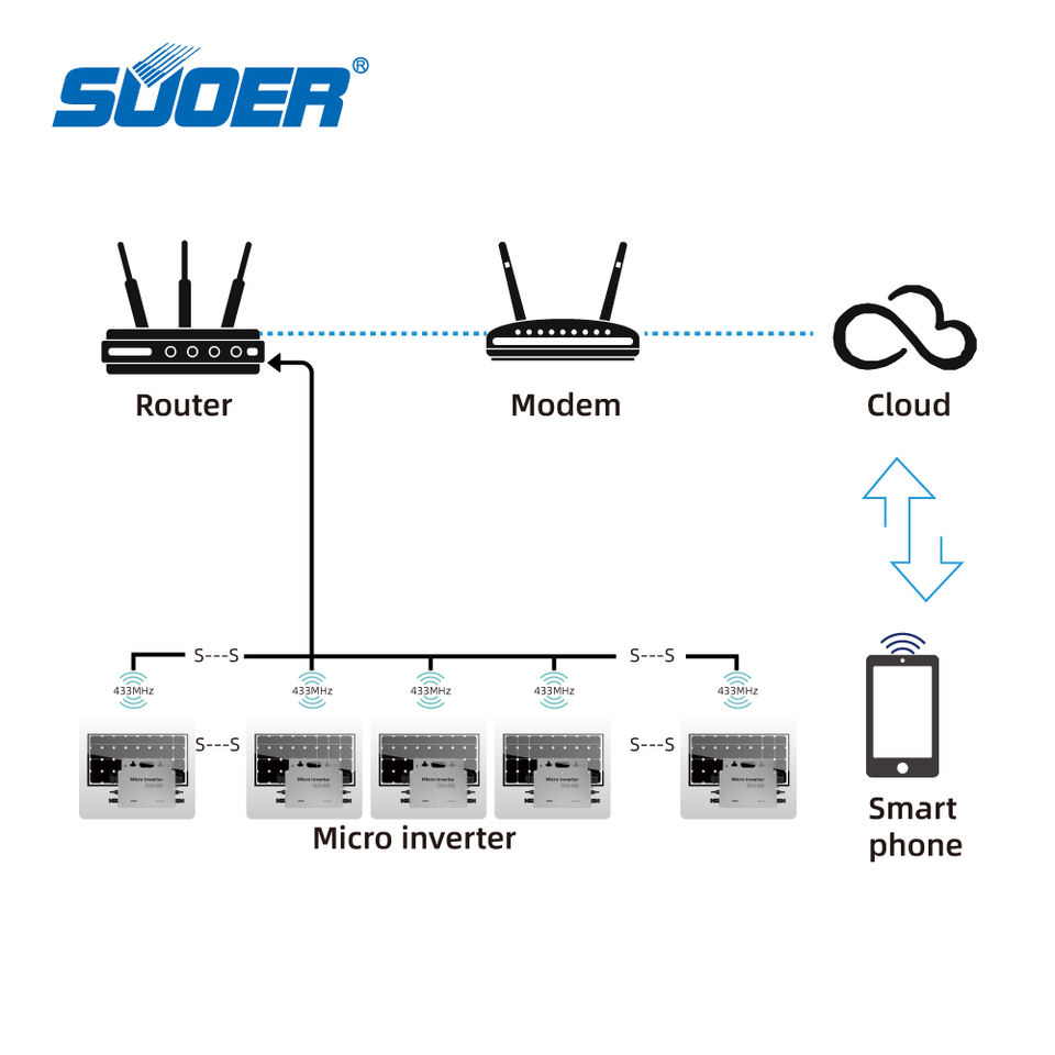 Micro-onduleur SUOER Micro-onduleur 800W 600W Micro-onduleur solaire étanche Micro-onduleur relié au réseau électrique