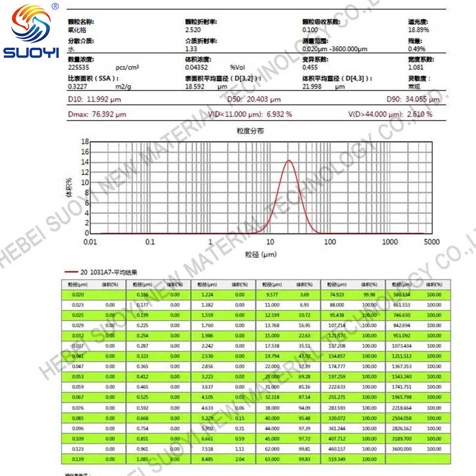 Poudre du trioxyde Cr2O3 de chrome de SUOYI CAS 1308 pour le matériel résistant au feu abrasif de métallurgie