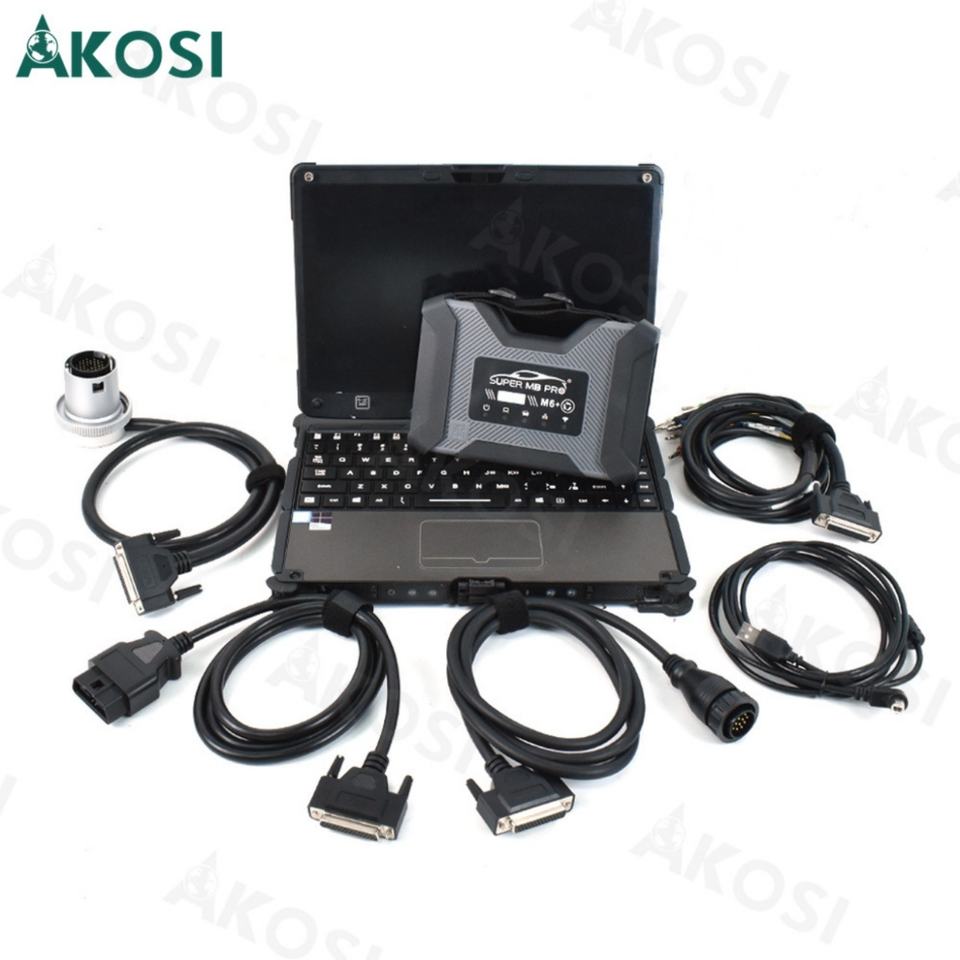 Outil de diagnostic sans fil SUPER MB PRO M6+ avec multiplexeur, câble LAN, câble de test principal OBD2 16 broches et ordinateur portable Getac V110