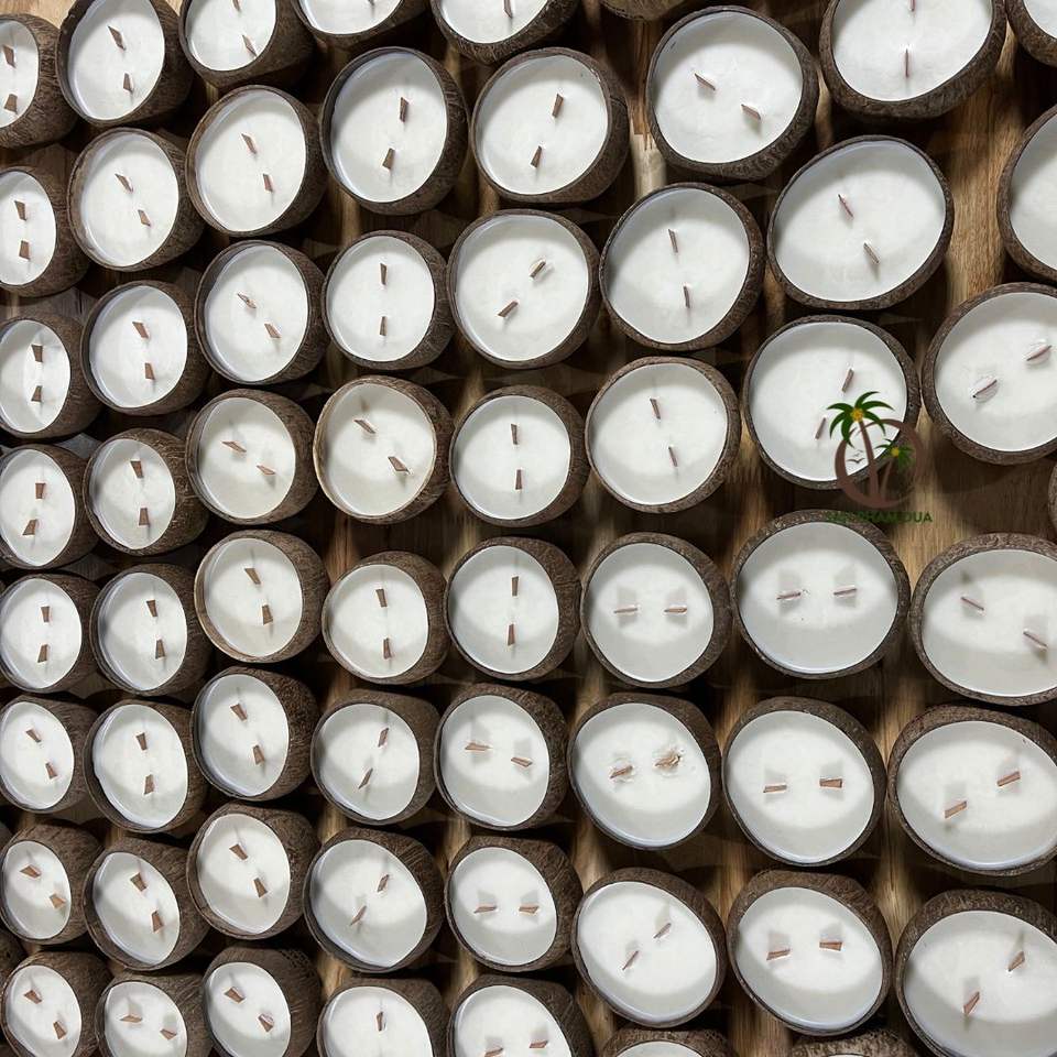 Bougie parfumée en coquille de noix de coco naturelle, cire de noix de coco avec huile essentielle naturelle, au meilleur prix de gros.