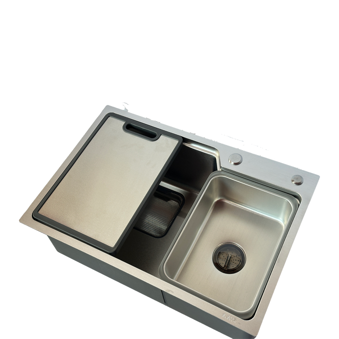 Leimanxi SUS 304 Évier de cuisine contemporain rectangulaire à cuvette unique en acier inoxydable modèle 7545B Grain de volcan fait à la main