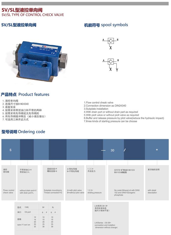 Clapet anti-retour de contrôle d'huile hydraulique de plaque signalétique personnalisée série SV/SL