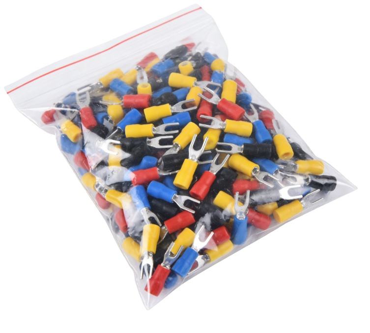 Terminaux de câblage de type SVS, fourches à sertir, en cuivre, soudés sous pression, étamés, isolés en PVC