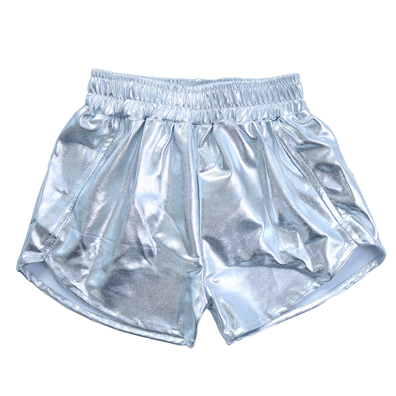 SW 2025 été filles couleur unie Shorts enfants filles tissu métallique Shorts filles Pu cuir Gym taille haute Shorts