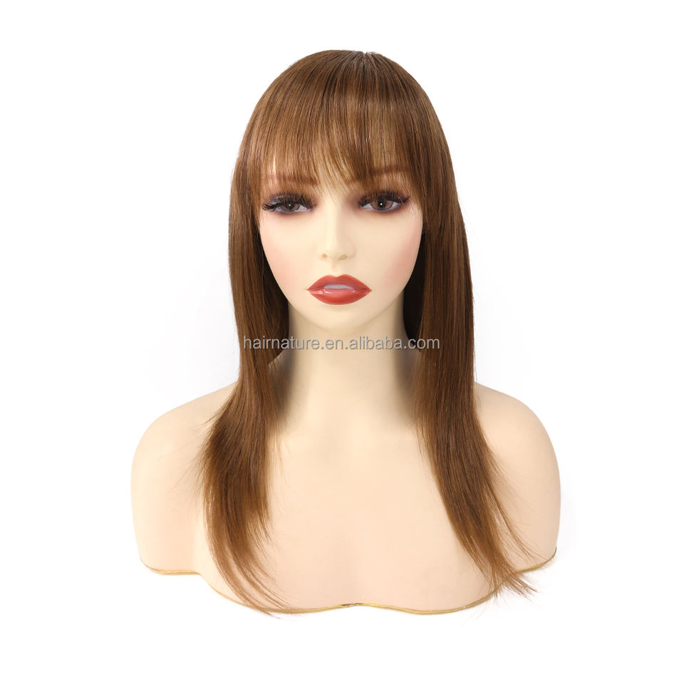 SW78-14 "perruque de cheveux bon marché de haute qualité pour les femmes couronne nouée Machine trame Simulation cheveux humains perruque naturelle avec frange