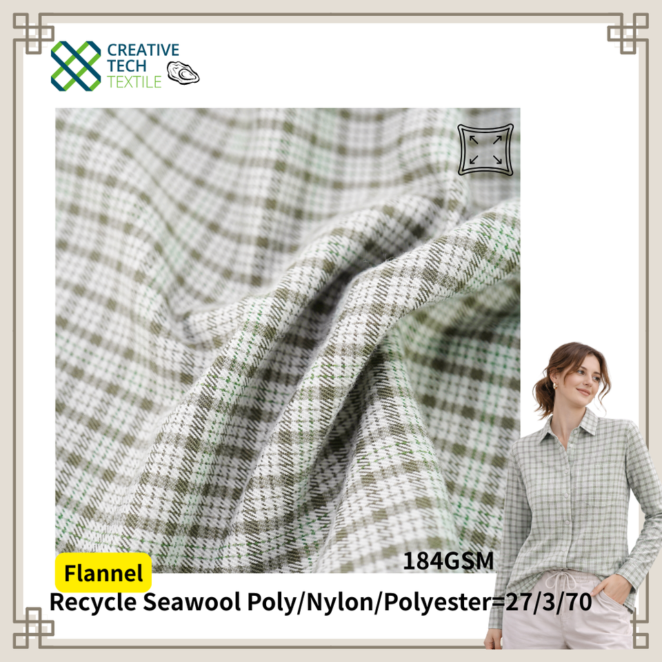 P/D, Flanelle, Nylon mélangé à laine de mer recyclée durable pour chemiseDispositif