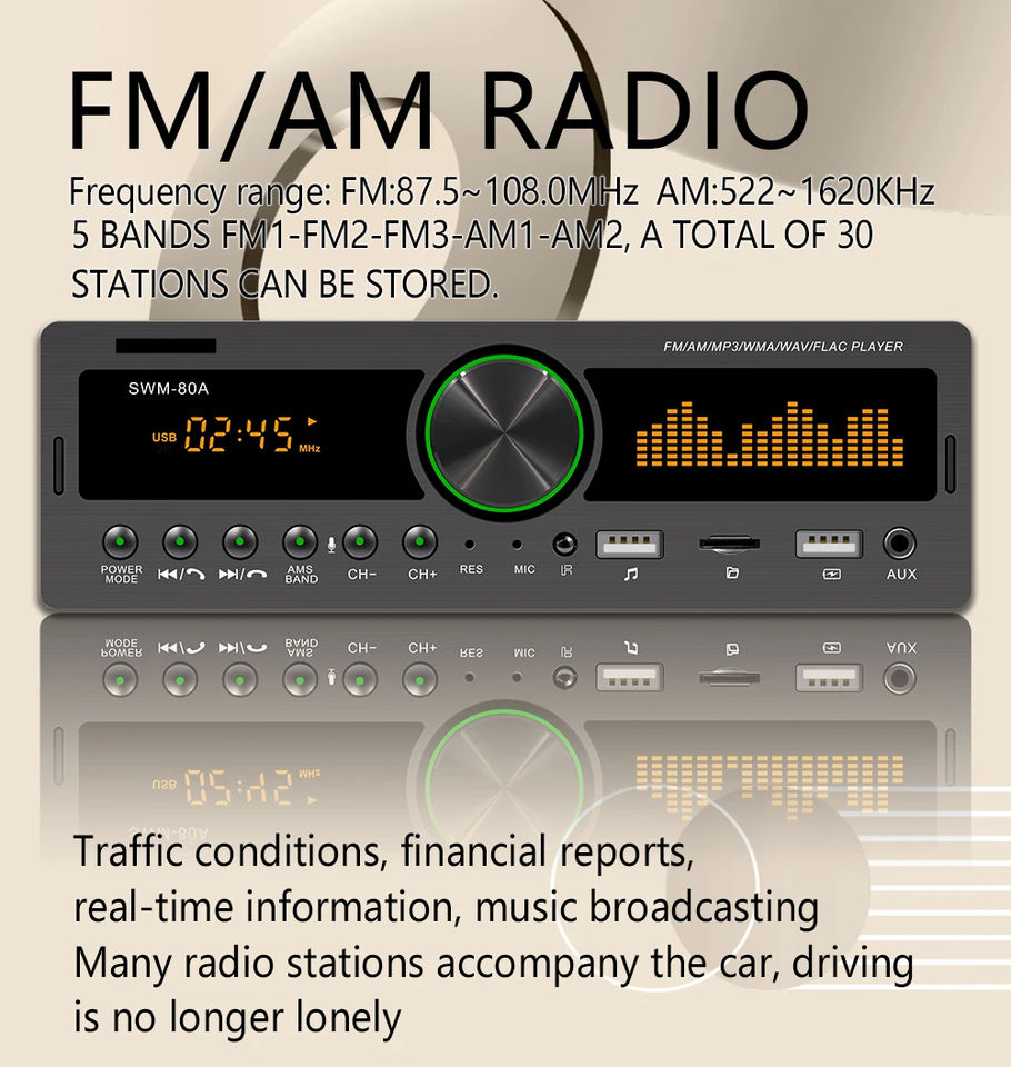 Lecteur MP3 stéréo de voiture SWM-80A 1DIN Radio FM/AM avec localisateur d'applications et lecteur multimédia audio de recherche de voiture pour le genre d'autoradio