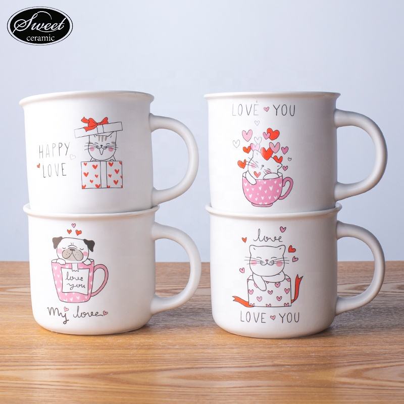 Mug en céramique personnalisé avec chat et chien mignons, cadeau de dessin animé, vente en gros d'animaux de compagnie, mug à thé et à café en émail pour enfants