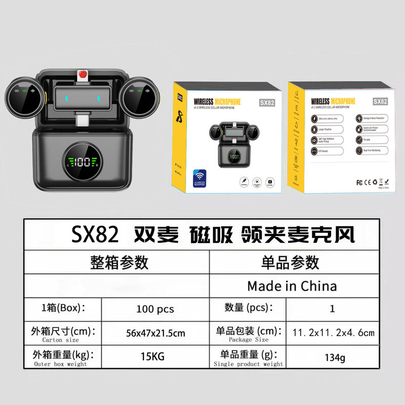 Nouveau Microphone Lavalier Dynamique Sans Fil 2.4G SX82 avec Réduction Automatique du Bruit Connecteur Type C Portable pour Mobile et PC