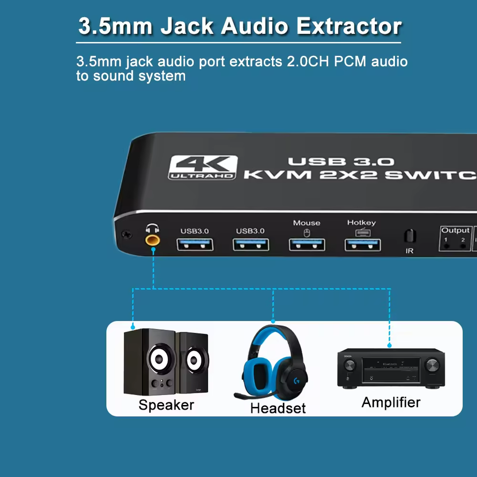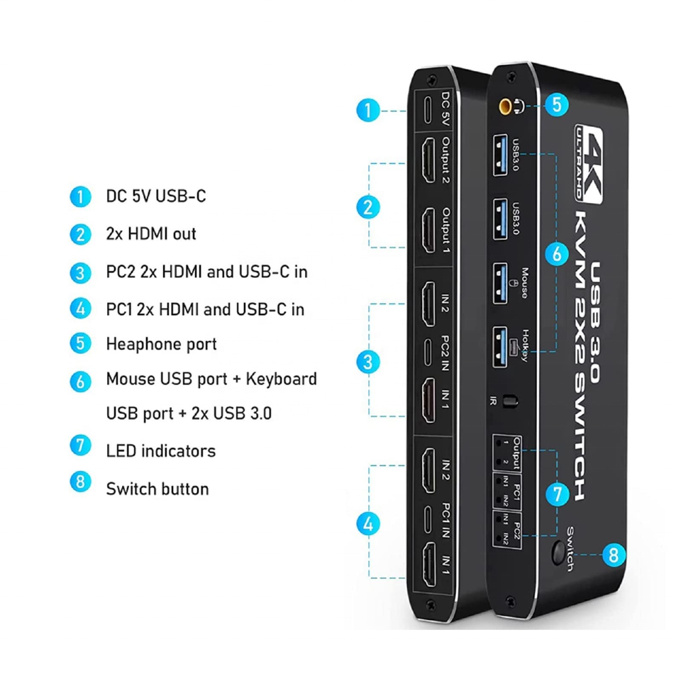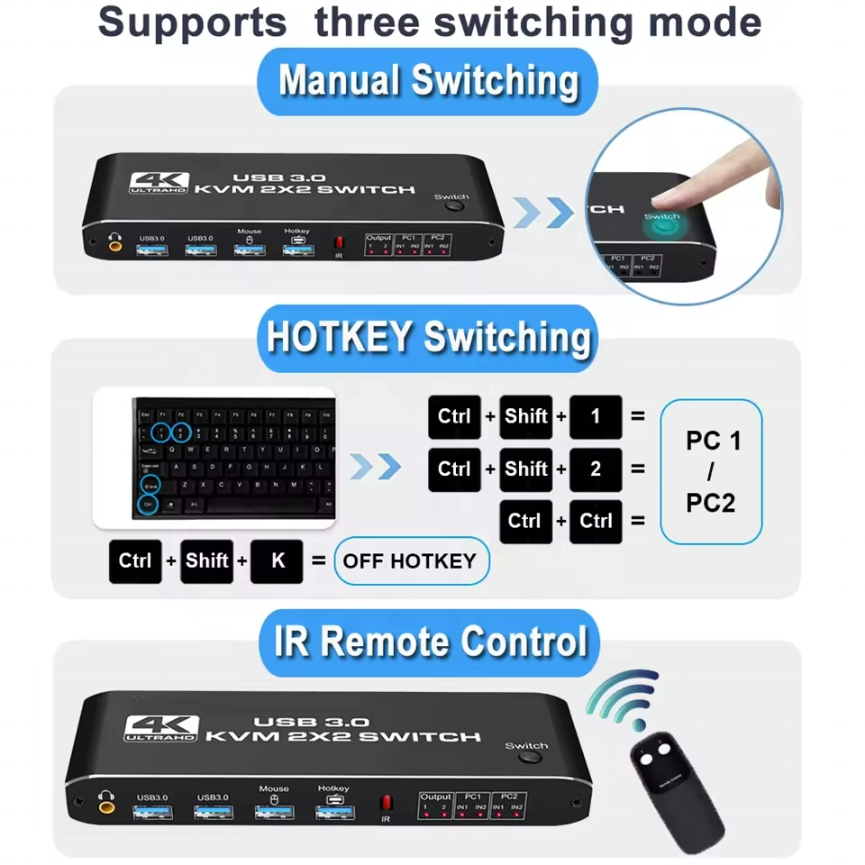 SY 2x2 pour commutateur HDMI Kvm 4K 60Hz double moniteur KVM pour HDMI étendre l'affichage USB KVM commutateur Audio vidéo accessoires pour 2