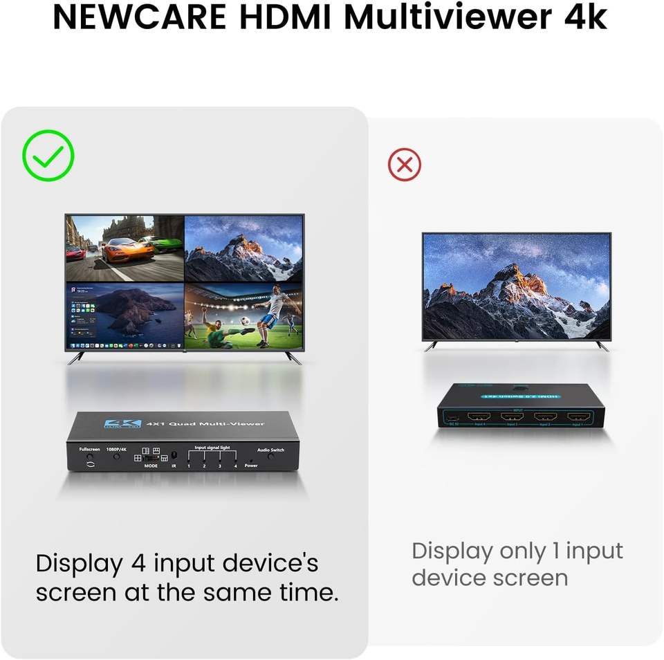 SY 4K HDMI Multiviewer 4x1 Quad Screen Real Time Multi Viewer 4 in 1 Seamless HDMI Switcher with Remote