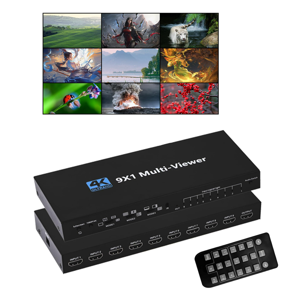 Commutateur Multiviewer HDMI SY 9x1 Sans Soudure 4K, Répartiteur d'Écran Multi-Vue en Temps Réel 9 Voies 9 Écrans, Adaptateur Commutateur 9 Entrées 1 Sortie