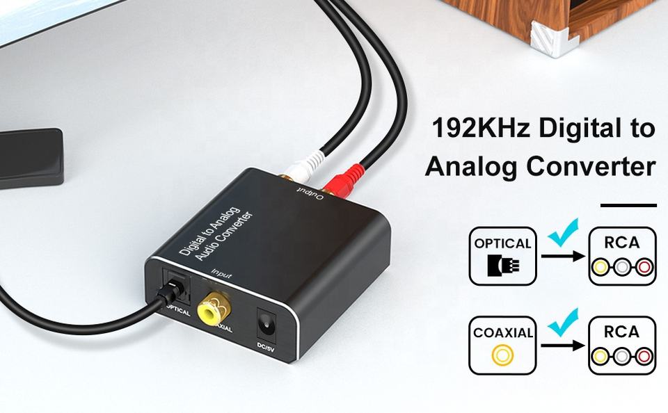SY S-DAC-202C Optical Fiber Coaxial RCA 3.5mm Analog to Digital Audio Converter Adapter Aluminum Alloy