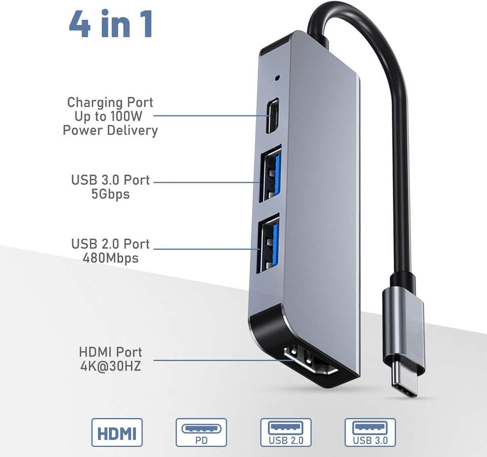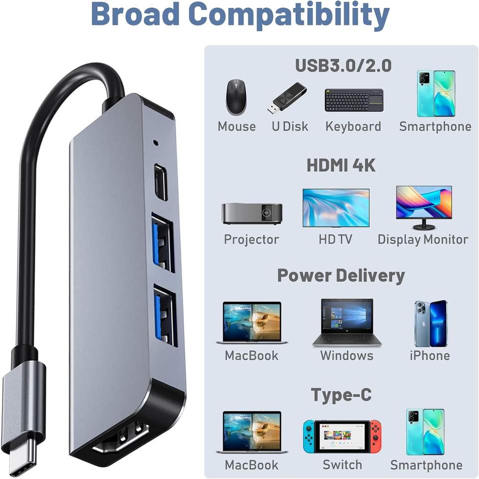 Station d'accueil SYONG 100W PD 4-en-1 avec hub USB-C pour adaptateur HDMI femelle, dongle USB 3.0/2.0, compatible multiport 4K 30Hz