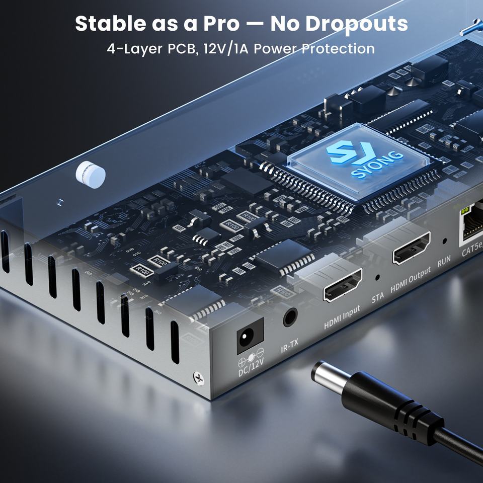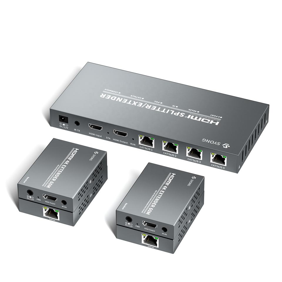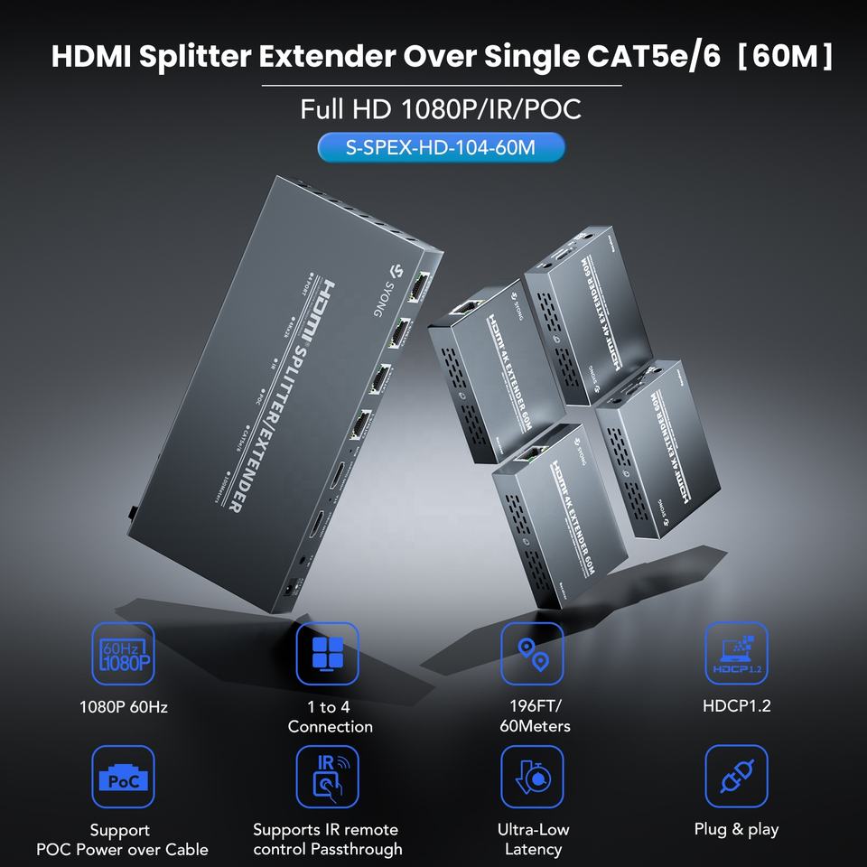 SYONG Répartiteur/Extenseur HDMI 1080P sur Ethernet 1x4 avec Télécommande IR, 1 entrée 4 sorties, Extenseur HDMI sur Cat6 POC + Boucle 60M