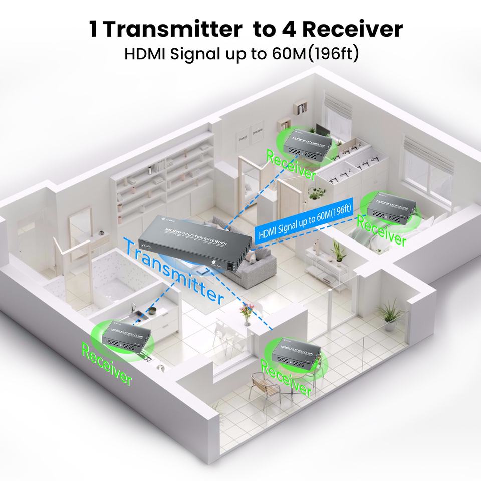 Répartiteur/Extendeur HDMI HD 60M 1x4 via Cat5e/6