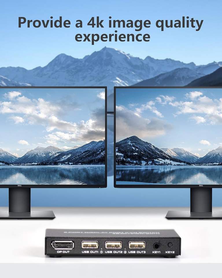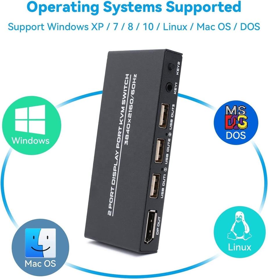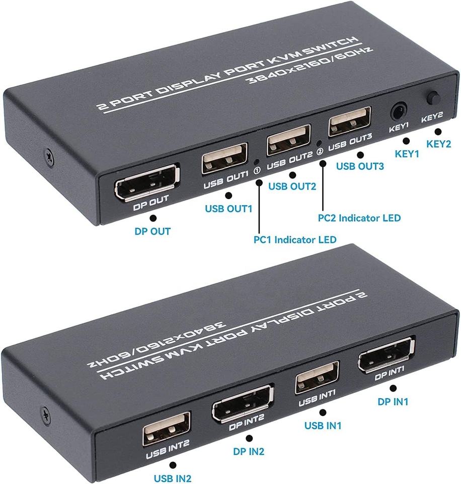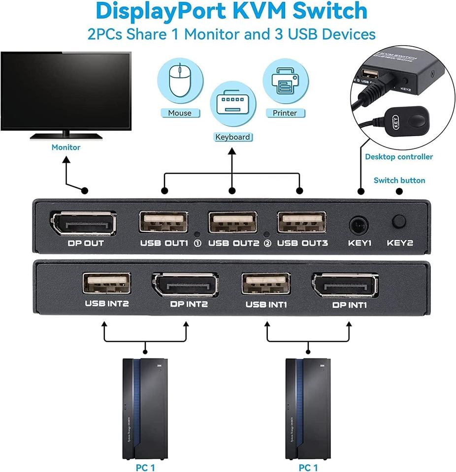 SYONG 2 ports Displayport KVM Switch 4K @ 60Hz, 2 voies DP USB Switch pour 2 ordinateurs Partager 1 HD Moniteur et Clavier Souris Imprimante