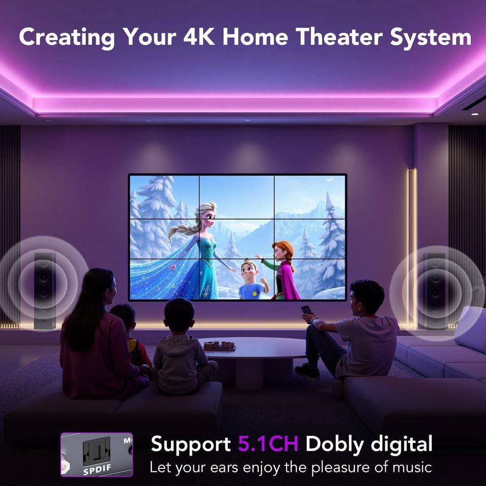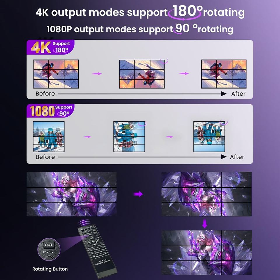 Contrôleur de mur vidéo SYONG 4K 3x3, 13 modes d'affichage à écran réglable, rotation à 180 °, 9 écrans de télévision pour 1 accessoire audio et vidéo