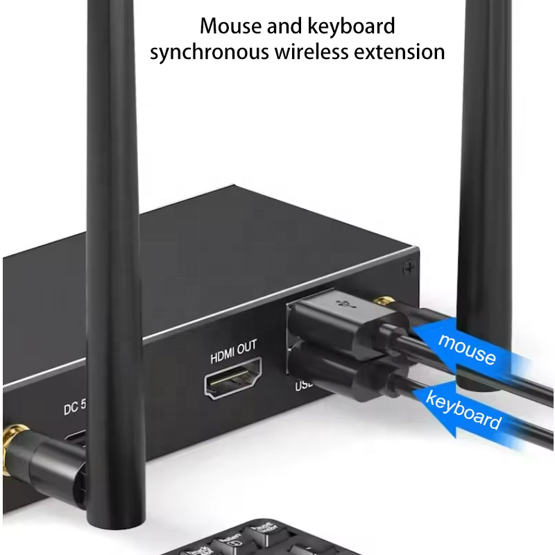 SYONG Extendeur HDMI sans fil 4K KVM sur IP pour diffusion vidéo 200m 5G, Émetteur et récepteur vidéo HDMI sans fil avec USB