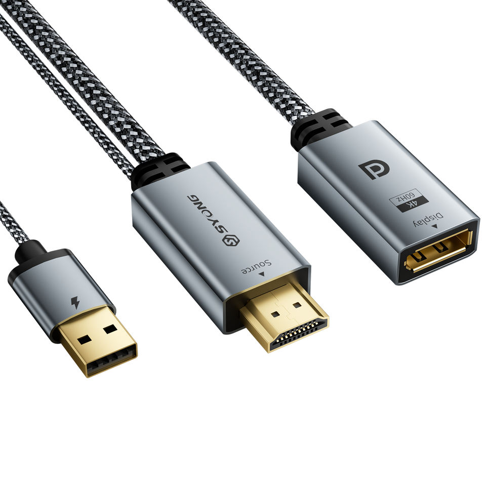 Adaptateur HDMI vers DisplayPort SYONG, convertisseur 4K60Hz unidirectionnel, source HDMI vers écran DP compatible avec ordinateur portable, PS5