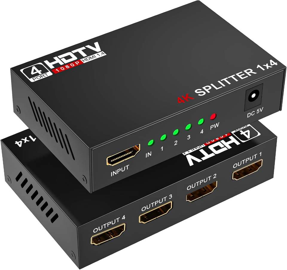 Répartiteur HDMI SYONG 1 entrée 4 sorties 1x4, Répartiteur vidéo HDMI pour affichage multiple, écran miroir, Ultra HD 1080P 4K / 2K, Église