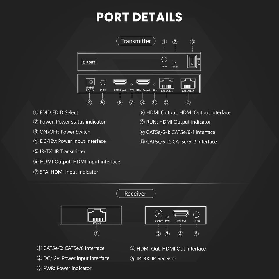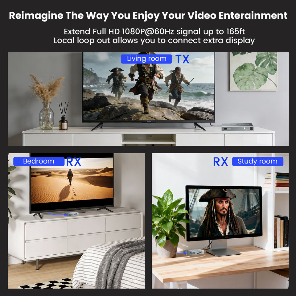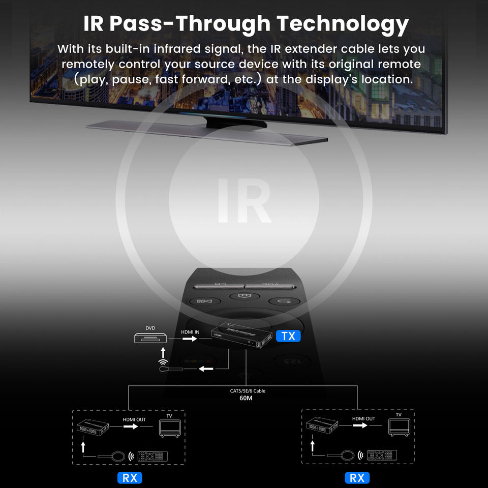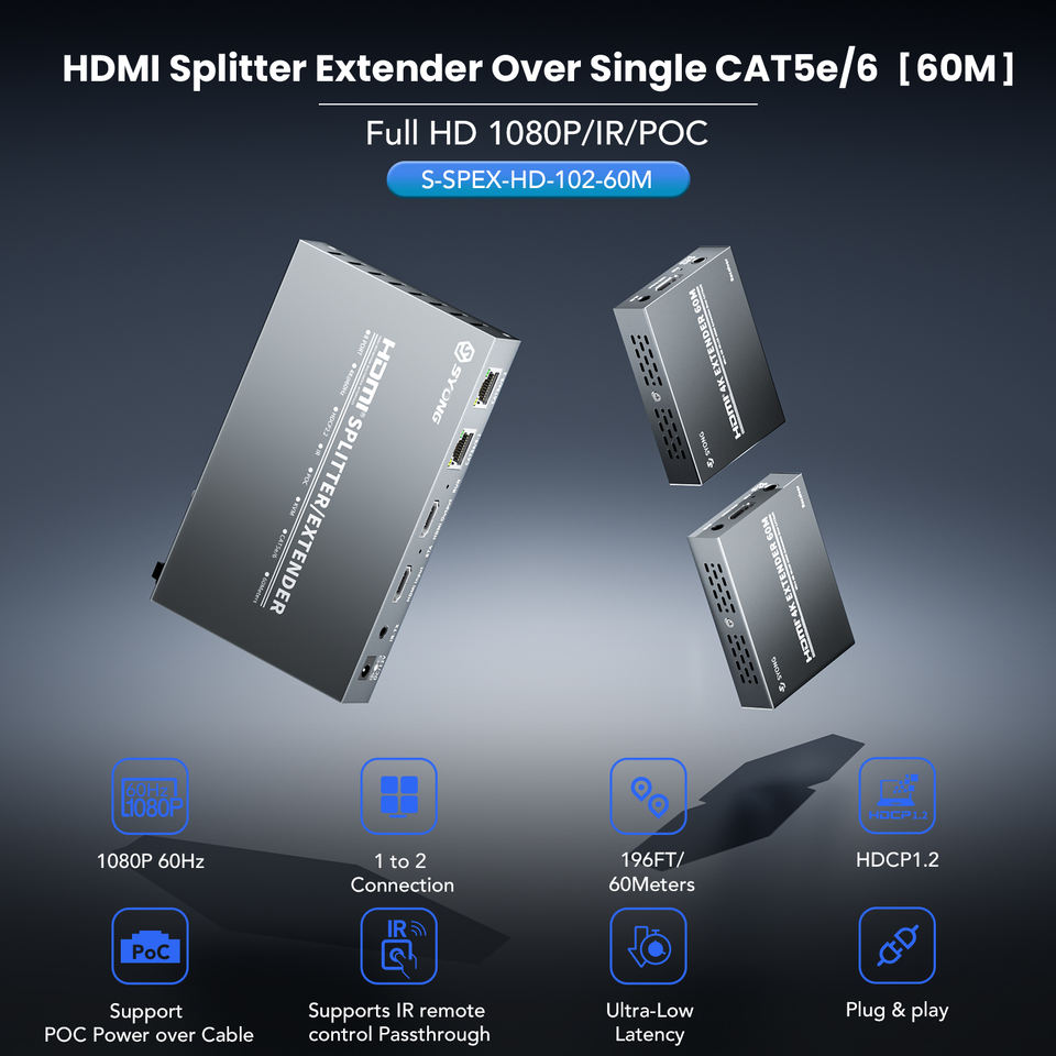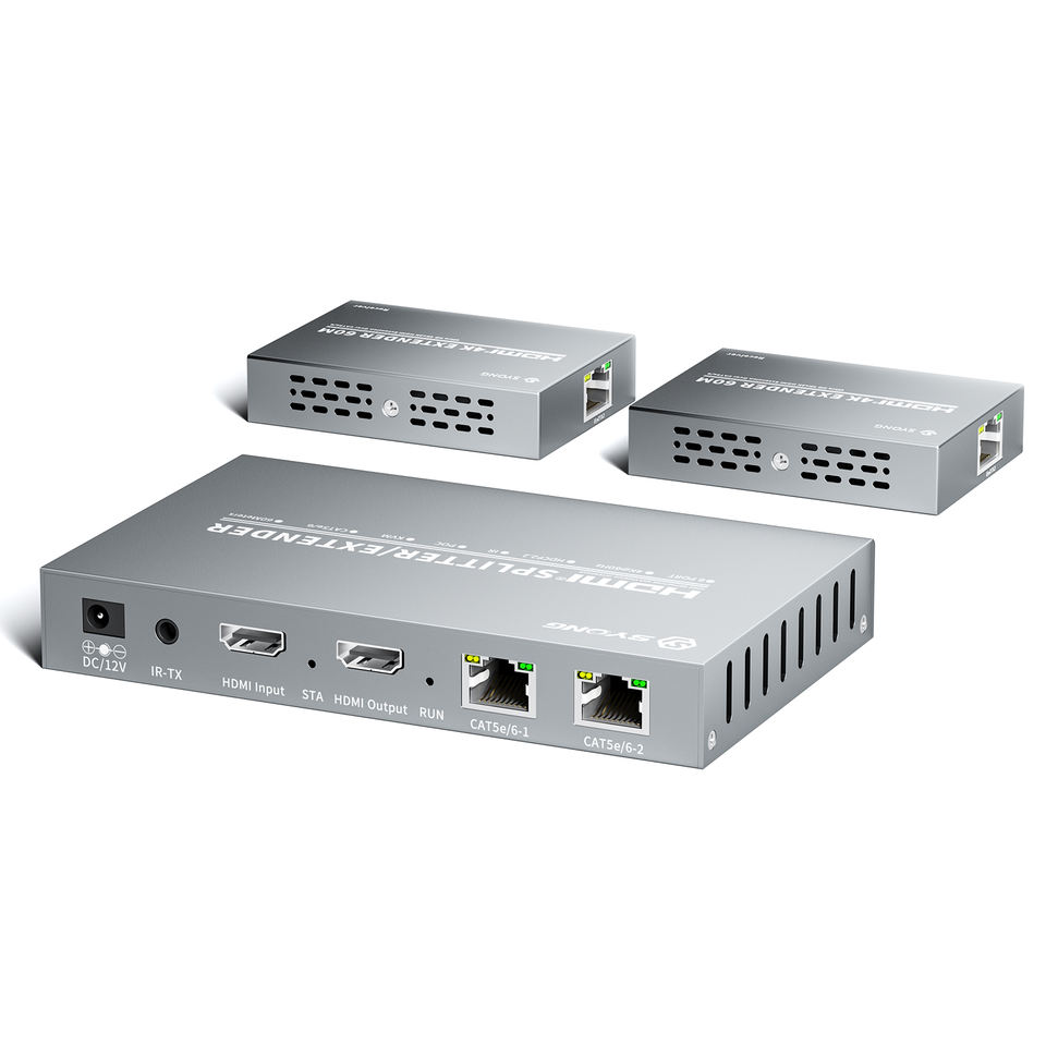 Répartiteur HDMI SYONG sur CAT5e/CAT6, 60m, RJ45, HDMI 1.3, HDCP 1.2, 1080P, POC, IR, EDID, sortie en boucle, DC 12V pour HDTV et récepteur AV