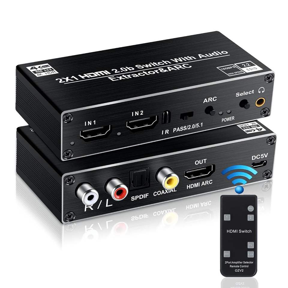 Commutateur HDMI SYONG avec extracteur audio ARC, 2 entrées 1 sortie 4K@60Hz avec sortie audio optique Toslink SPDIF coaxiale + analogique RCA stéréo