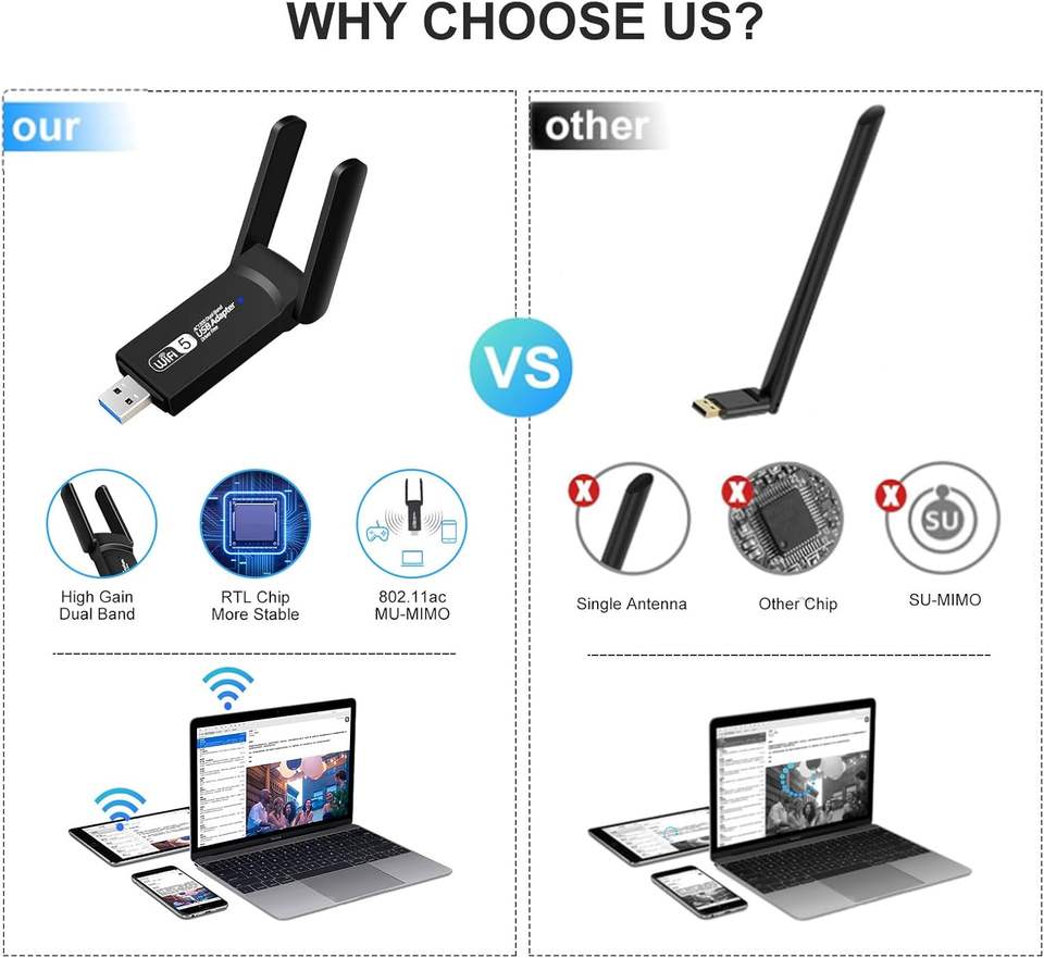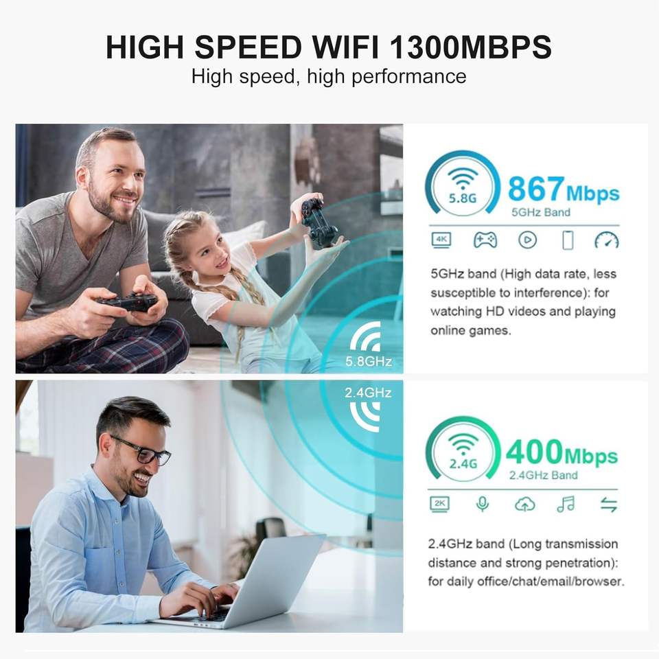 Nom du produit:Adaptateur WiFi USB 1300 Mbps