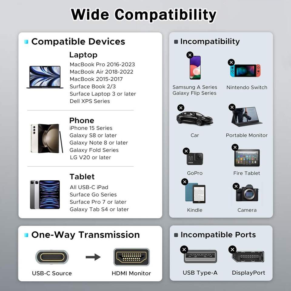 Câble adaptateur SYONG USB-C vers HDMI pour téléphone 4K 30HZ, synchronisation vidéo et audio, compatibilité de sortie YouTube vers TV