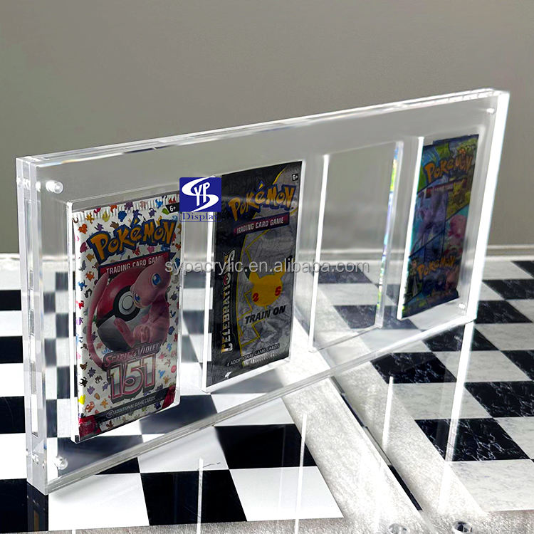 SYP Vente flash Support d'affichage en acrylique transparent à 4 emplacements pour cartes Pokémon Yu Gi Oh MetaZOO pour boîte de cartes à collectionner TCG Booster Trading Magnet