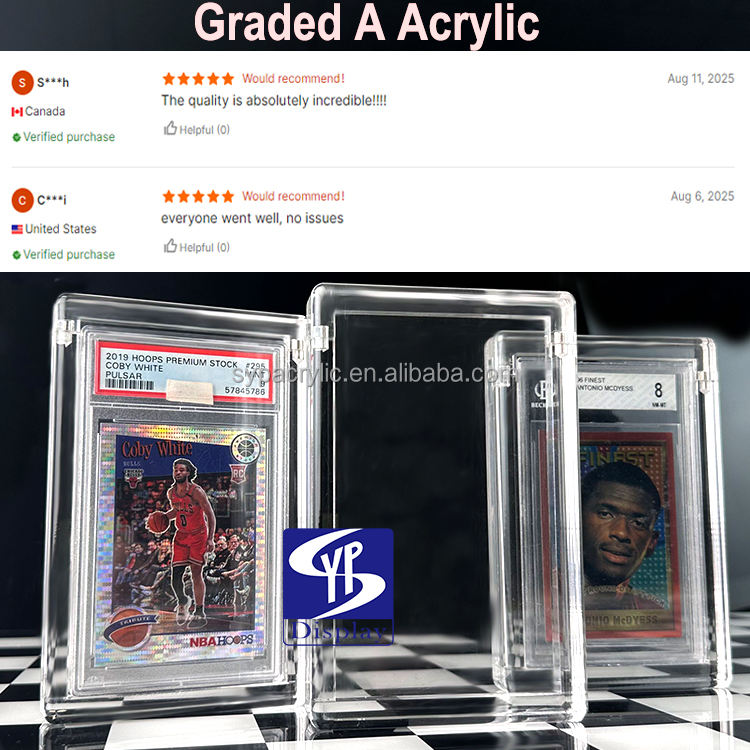 SYP vend des boîtes de présentation pour cartes graduées en acrylique transparent, support de rangement et de présentation en acrylique pour cartes Pokémon, support de protection pour cartes