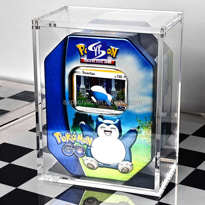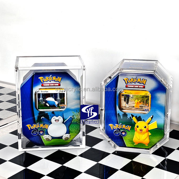 Boîte de rangement en acrylique pour cartes Pokémon TCG: GO - Pikachu - Boîte en étain Pokémon - Carte ultra rare - Étui en acrylique - Aimant puissant - Ouverture facile du couvercle