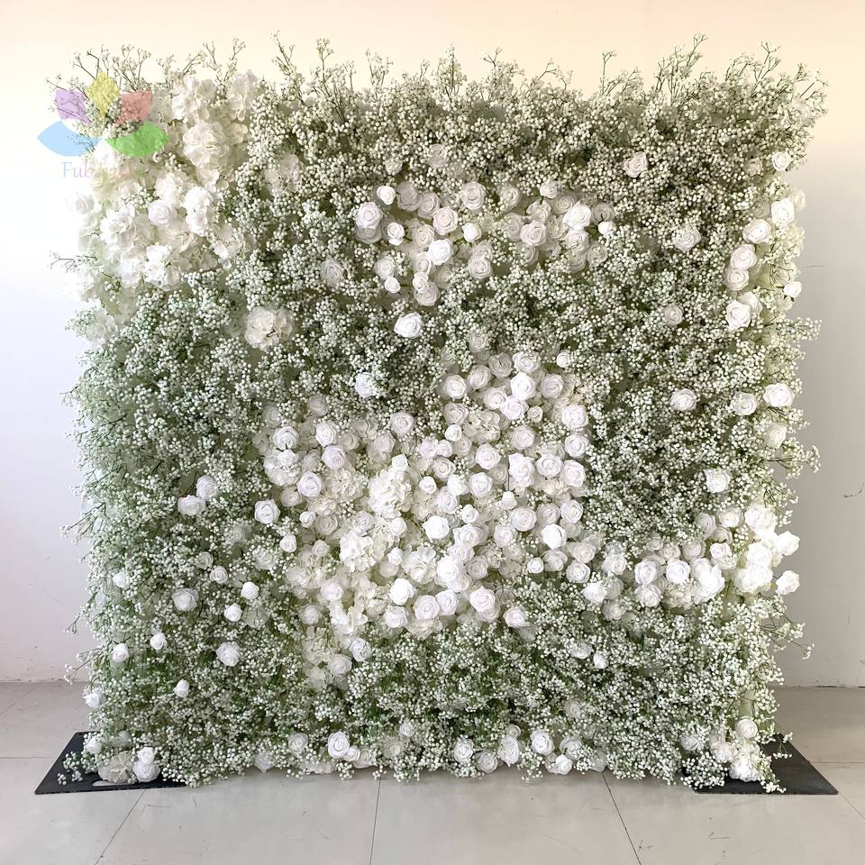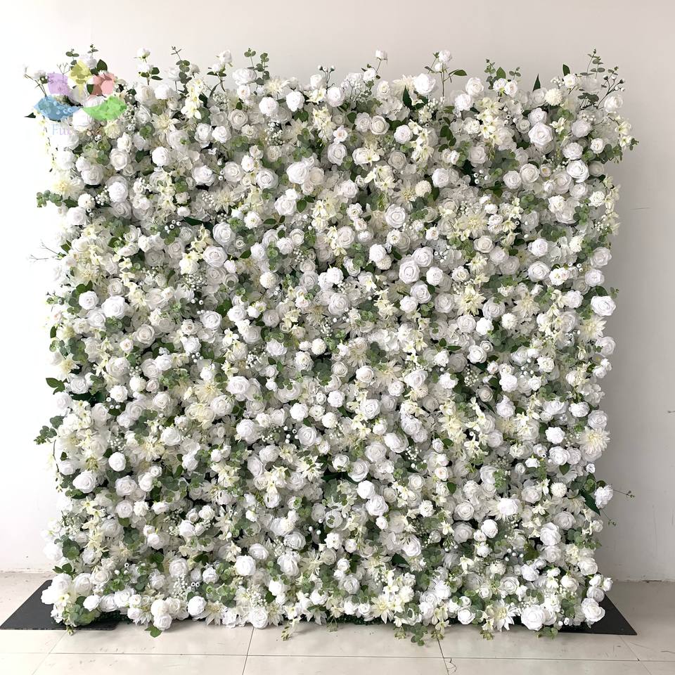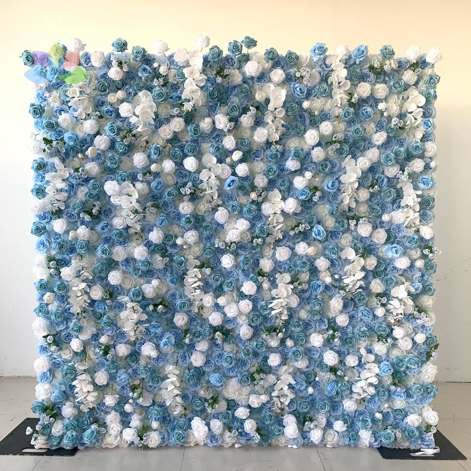Autres décorations florales et végétales pour mariage, mur de fleurs artificielles 5D en tissu enroulable, bleu royal, rose artificielle en soie blanche et bleue