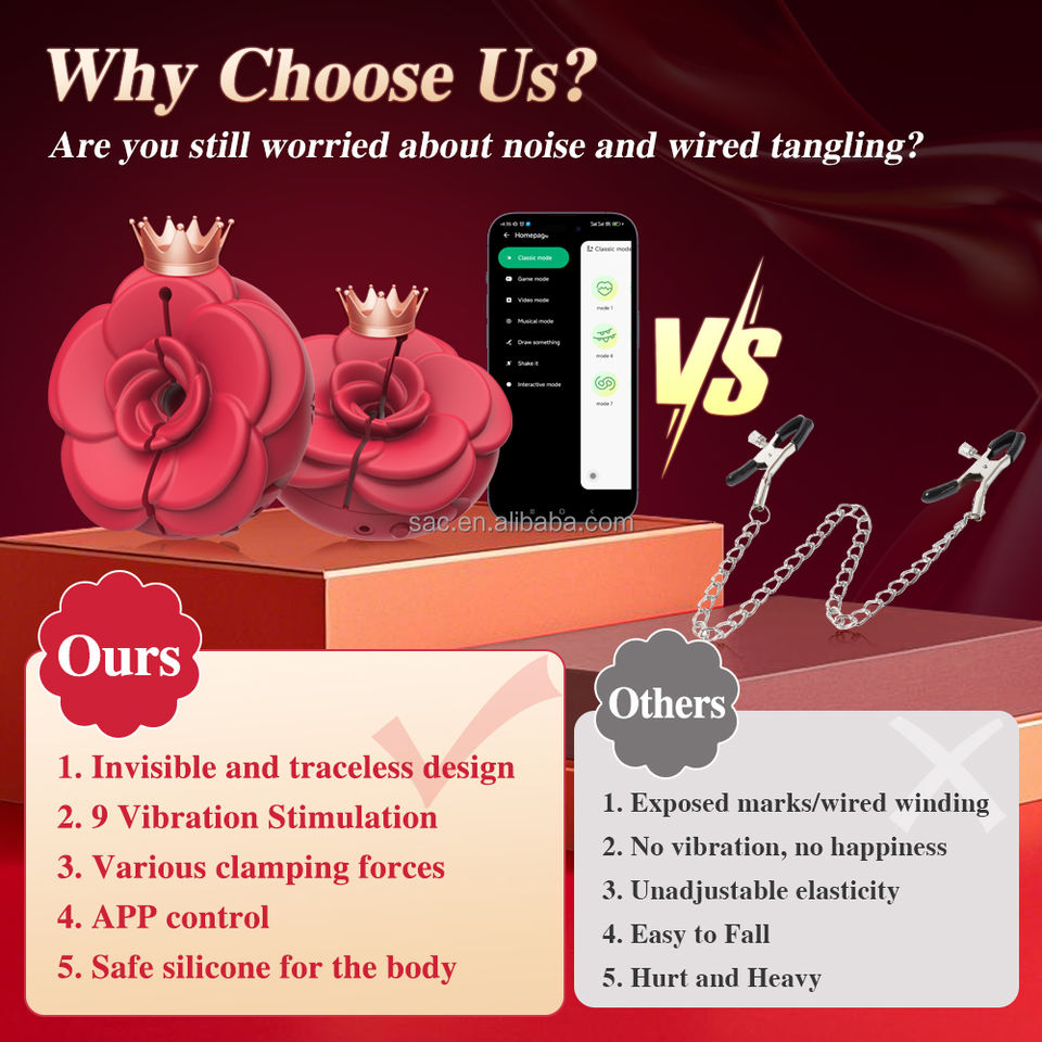 SacKnove App Control Femelle Électrique Poitrine Torture Clip Massage Stimulateur Sex Toy Rose Fleur Vibrateur Vibrant Mamelons Pince