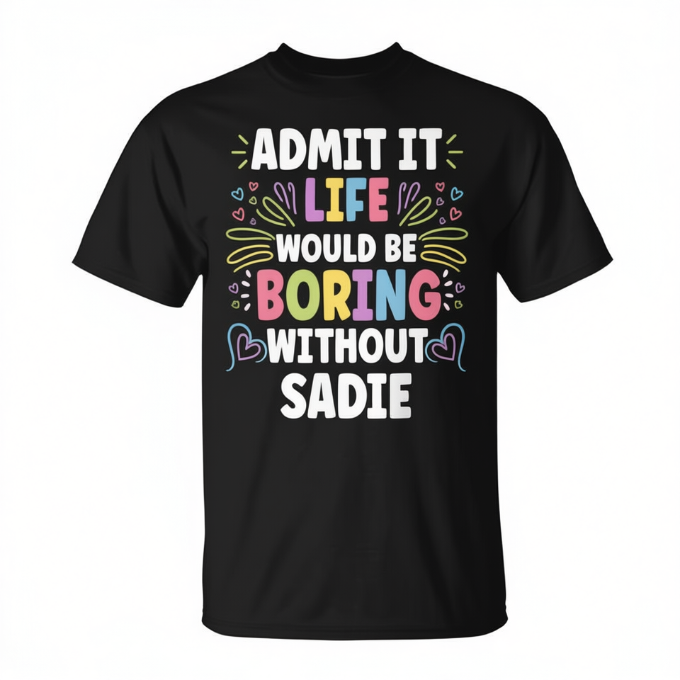 T-shirt personnalisé Sadie avec nom, design promotionnel mignon avec impression de nom unique