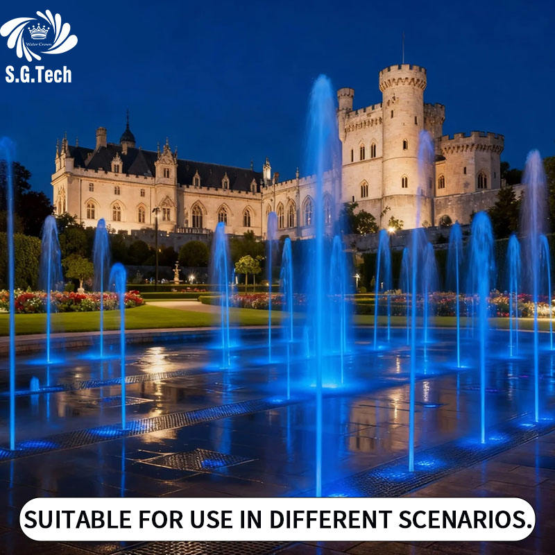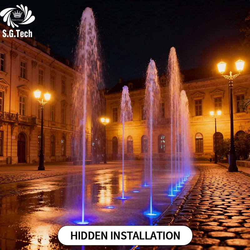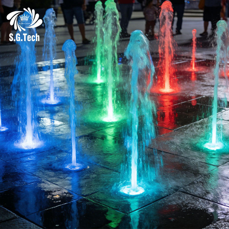 Fontaine moderne en acier inoxydable pour aire de jeux pour enfants, sûre et résistante aux intempéries | Fontaine d'eau sans piscine à installation enterrée avec LED colorées