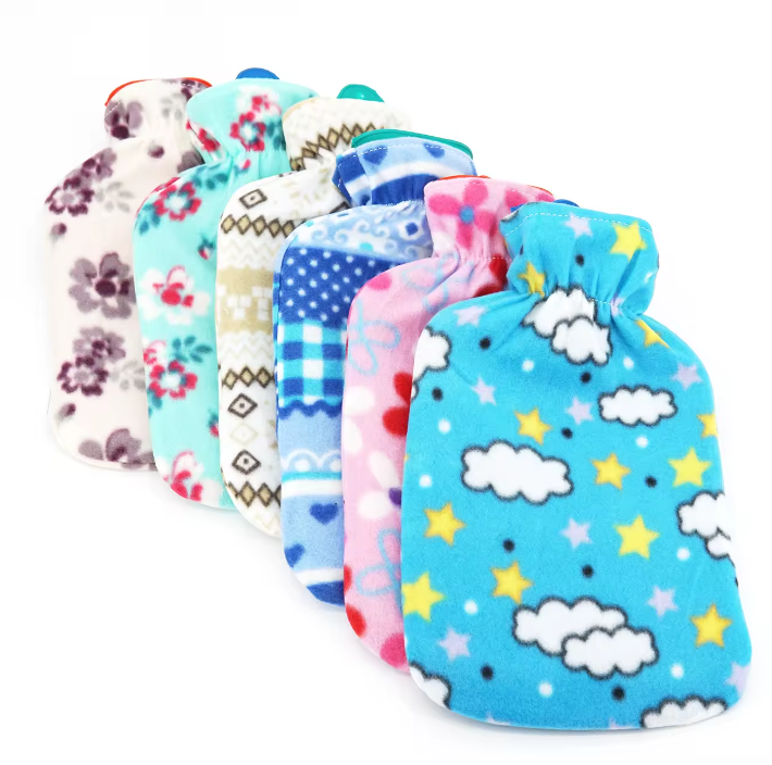 Bouillotte en caoutchouc 2000ml pour réchauffer longtemps en toute sécurité avec une belle couverture multiforme en polaire