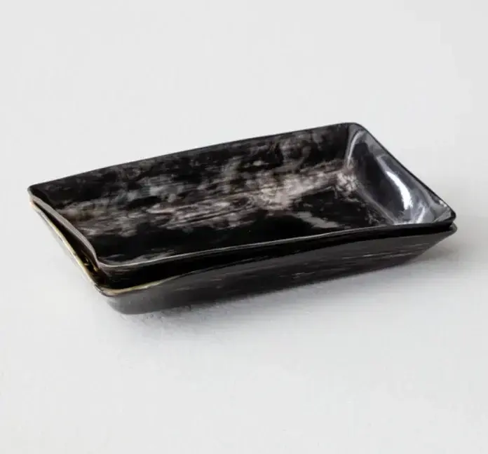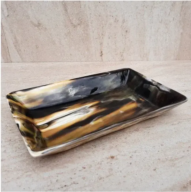 Safe New Arrival High Quality Polished Horn Camping Plate Dish Eco-Friendly Handpainted Custom Size Square Classic