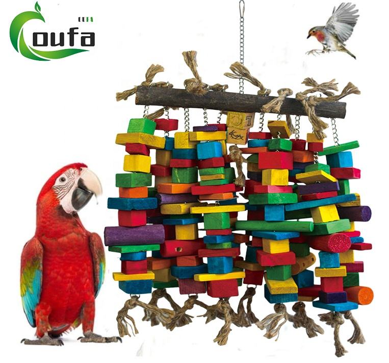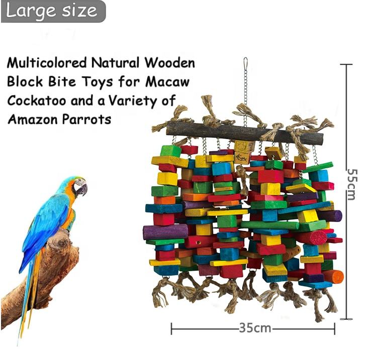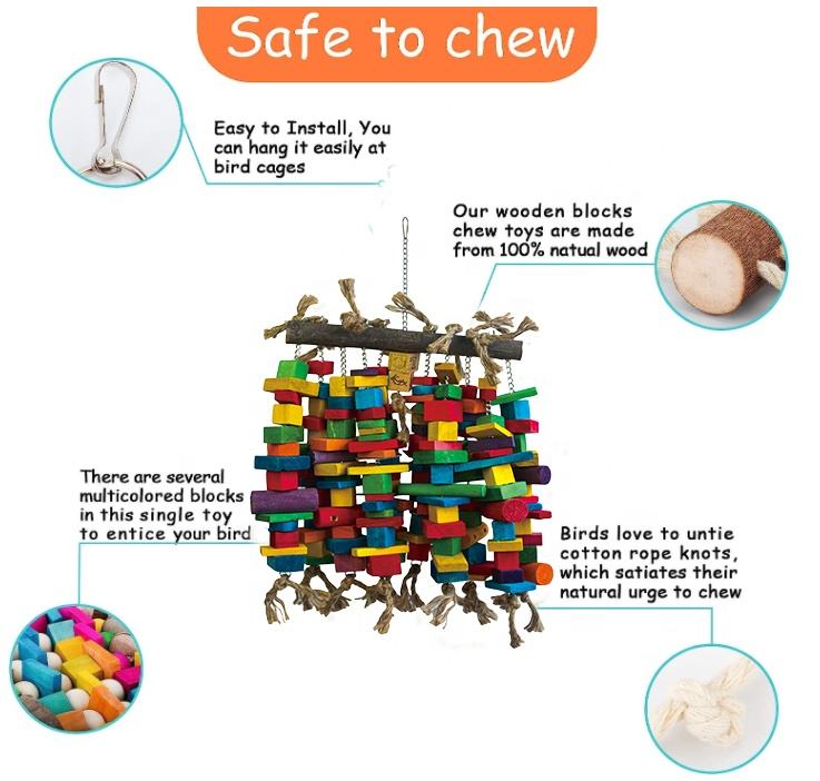 Matériaux de sélection sûrs Moyen Grand Oiseau Multicolore Blocs en bois naturel Jouets Pet Perroquet Oiseaux en bois Jouet à mâcher