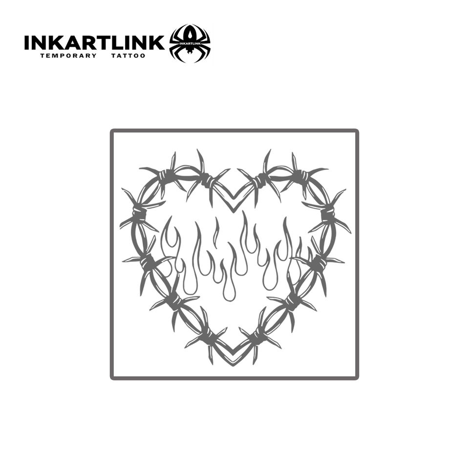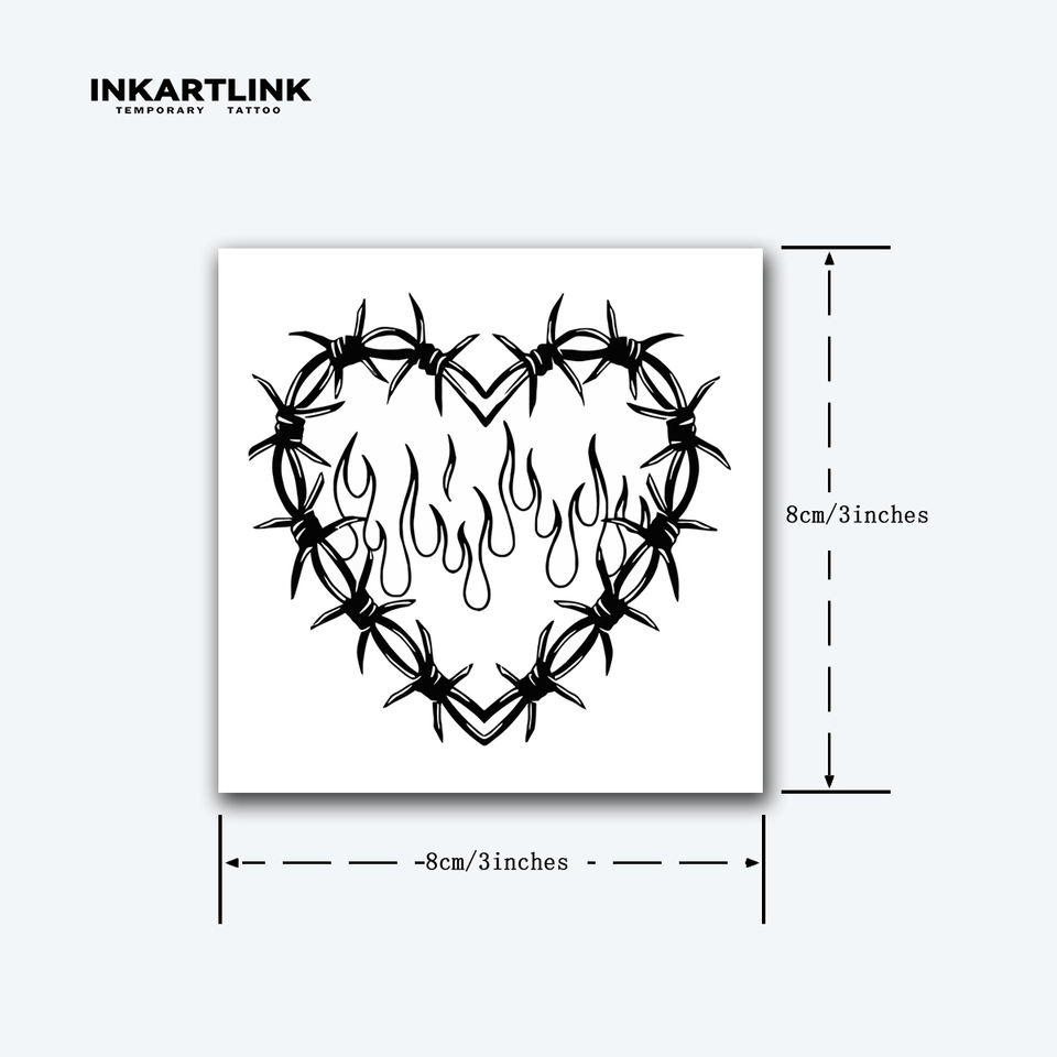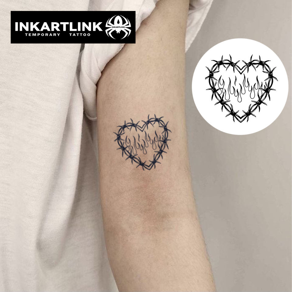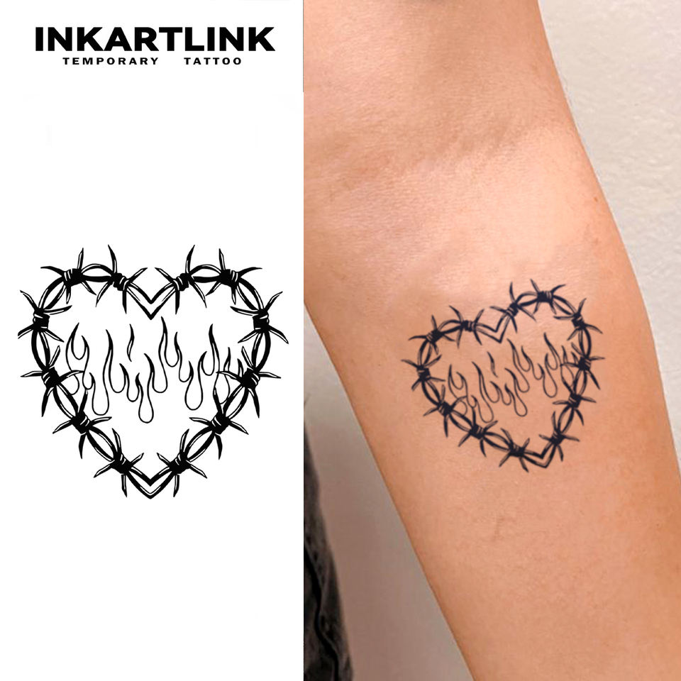Tatouage semi-permanent en forme de cœur en fil de fer barbelé imperméable et sûr, tatouage écologique à base de jus naturel, dure 2 semaines