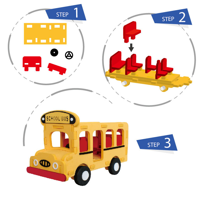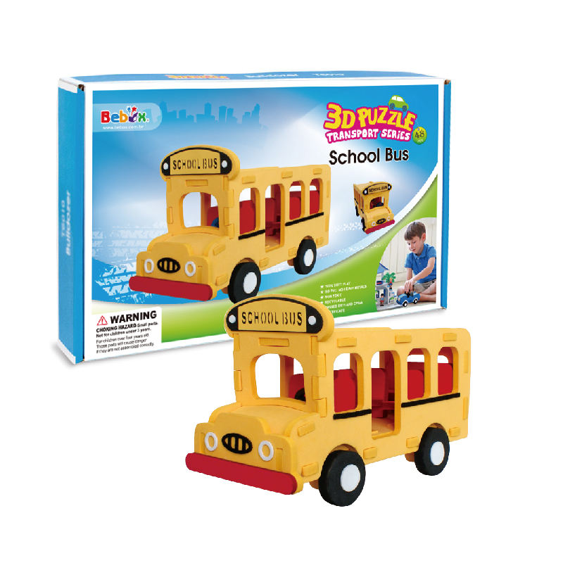 Puzzle d'autobus scolaire 3D coloré jouet éducatif de bricolage en EVA sûr et non toxique pour les enfants âgés de 5 à 7 ans