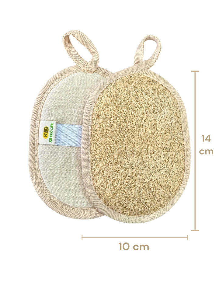Éponge de bain ovale naturelle KB Sun en loofah, sûre pour les peaux sensibles, exfoliante et écologique, avec dos en coton doux