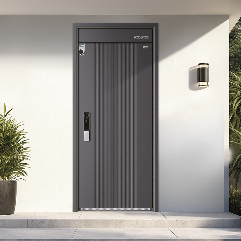 Porte d'entrée extérieure haut de gamme allemande en acier de sécurité, avec couvercle anti-pluie et serrure, en aluminium, design principal sécurisé